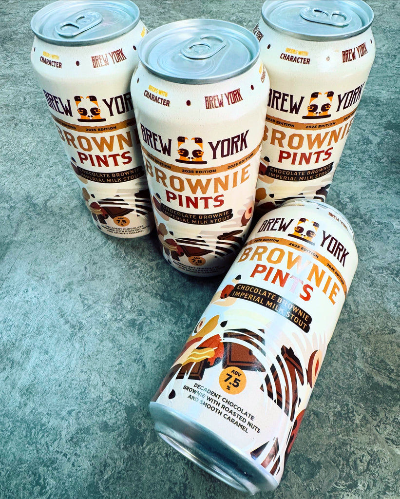 Brownie Pints is a decadent imperial milk stout inspired by the rich indulgence of a freshly baked chocolate brownie. Pouring dark and smooth, this luxurious brew delivers bold flavours of gooey chocolate, roasted nuts, and sweet caramel, all wrapped up in a velvety mouthfeel.